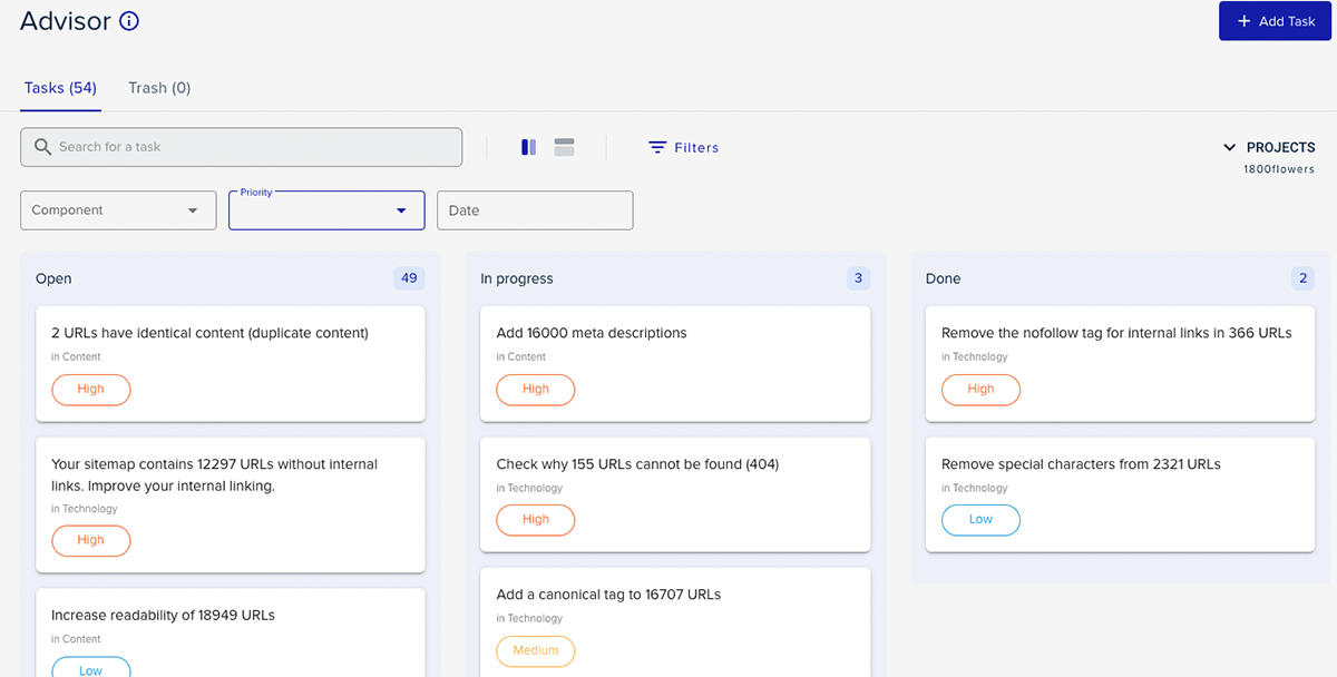 As mentioned above, tasks are a mix of standard basic SEO measures and issues found in weekly automated audits of your website.
